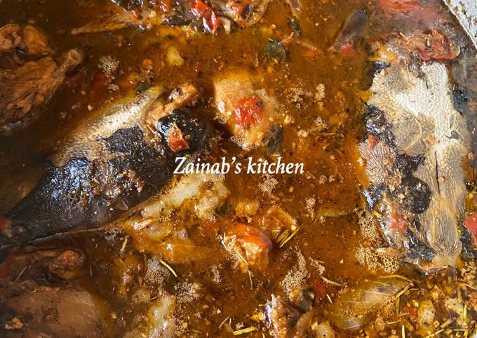 - Step 6 Fried fish in palm oil stew🍽🐟.