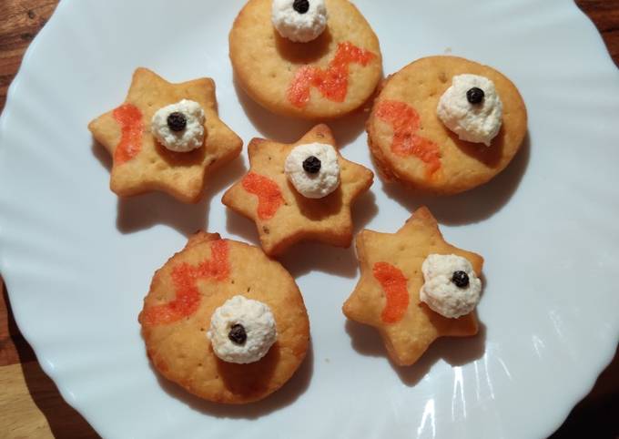 - Step 10 Mix eadible red colour with lil milk, make teeth or any spooky design on the Mathari, let it dry. Plate it now.